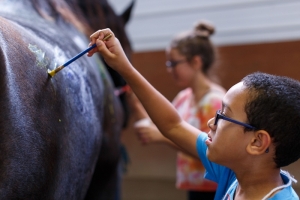 One of the most well-liked activities among families is going to the Agape Therapeutic Riding facility and painting horses. The paint is washable. After completing some groundwork activities with the horses, families pick a horse and then paint a word or more that states what they need more of in their family, such as love, trust or fun.